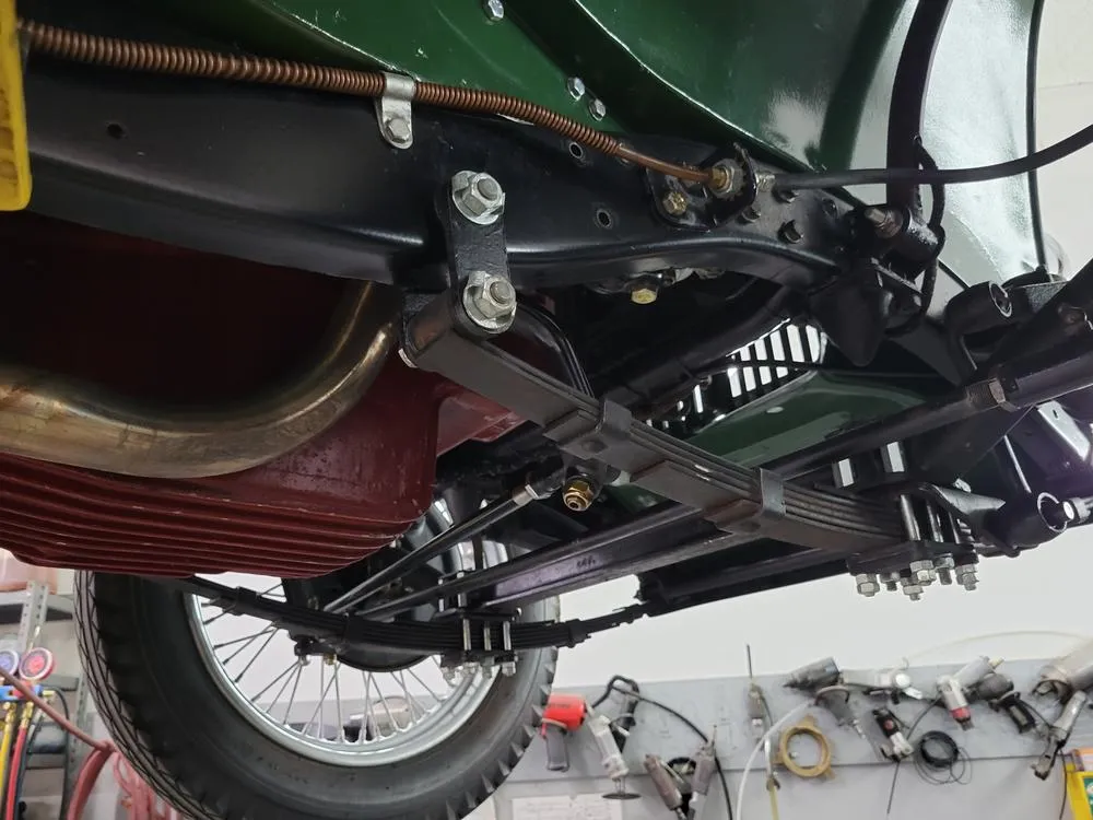New suspension, brakes, tires, wiring, rubber chrome clutch, glass, leather wool and top/was replaced. The gauges were beautifully restored and rebuilt by Nisonger Instruments. A stunning burled dash was created by Randy Keller of Prestige Auto Wood. Many period accessories were installed such as the unique alloy valve cover with really cool air filter.
