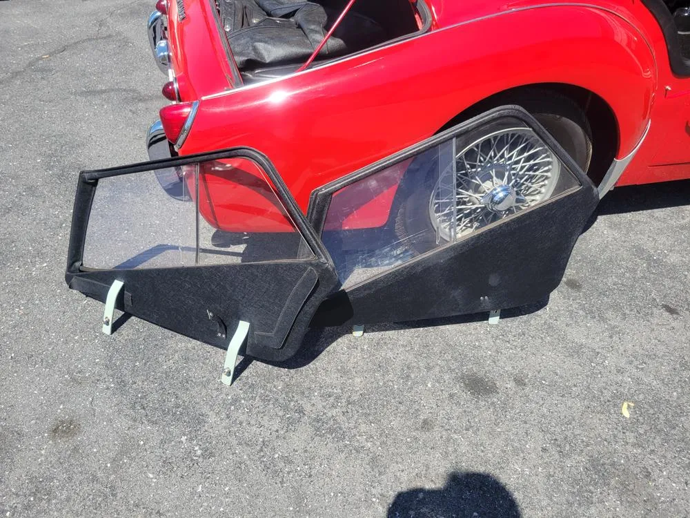 This car received a frame off restoration done in New York State approximately 7 years ago. We purchased the car and finished a few details and sold it to one of our clients. They have since sold their house and lost garage space. They have asked us to sell the car and we are pleased to be able to offer it. It was subject to a very comprehensive restoration and has a very nice appearance overall. Finished in signal red with black interior; the car has painted 60 spoke wire wheels and comes complete with not only top and side curtains, but also a full tonneau cover and car cover.