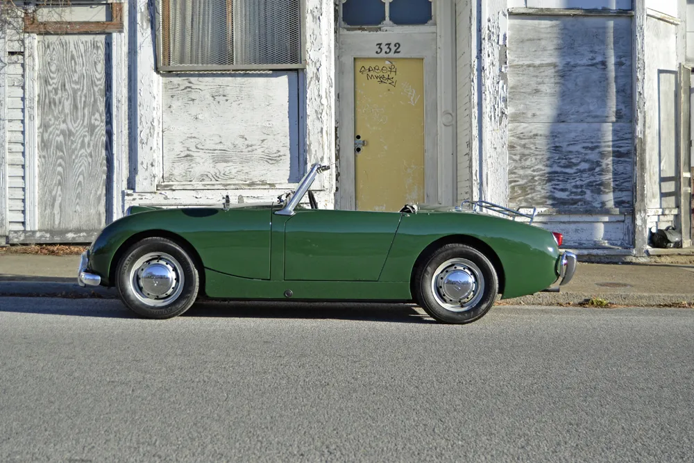 We are very pleased to be able to offer this very correct 1961 Austin-Healey Bugeye Sprite. I have personally known this car for over 35 years. The car has literally won over 50 first place awards at British Car shows, as the previous owner was one of my good friends and we drove all over the East coast to car shows together. Keep in mind I said “drove to,” as he never used this as a “trailer queen.” It is a fabulously driving car and has many unusual original components that he had sourced all over the world to make this as correct as it is. While the restoration is definitely “older,” the condition of the car is extremely nice, and it has had a significant recent service making it truly ready to go. Some of the unusual options on this car include: full weather gear, very rare Amco console with lighter and speaker, period correct Amco luggage rack, original safety latch on bonnet, and the proper 948 engine with copper spark plug leads and is correctly detailed. One of the most honest Bugeyes I have ever seen, and truly one of the nicest driving cars I have ever been in. While there are many restored Bugeyes available, most are full of reproduction parts and the authenticity of those cars have slowly gone down. Great pains were taken to keep this car correct, and when replacement parts were needed NOS parts were sourced. Bugeye is completely ready to go and virtually impossible to replace.