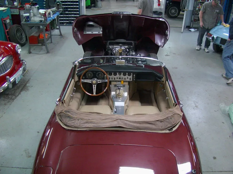 It is very unusual to have the car with the original boot cover as this has. The top, I believe, is original, but the rear window has darkened, and the condition is not representative of the rest of the car. As I write this, we are currently replacing the top with a new one from BAS Jaguar Trim and will also be recovering/restoring the header, straps, webbing, seals, etc. to new factory spec.