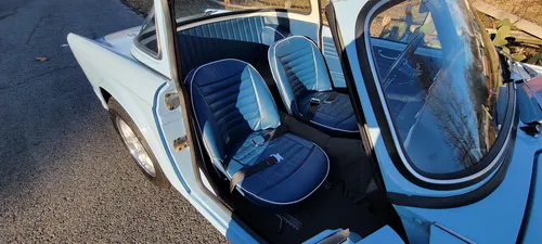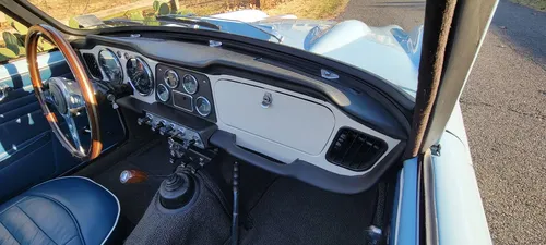 The car was stripped to bare metal and resprayed on a rotisserie. Originally this car was born white with a black interior but during restoration it was decided to paint it Triumph’s Powder Blue which was a factory correct color in '63. The car was done as a tribute to the factory works cars which were all done in Powder Blue.