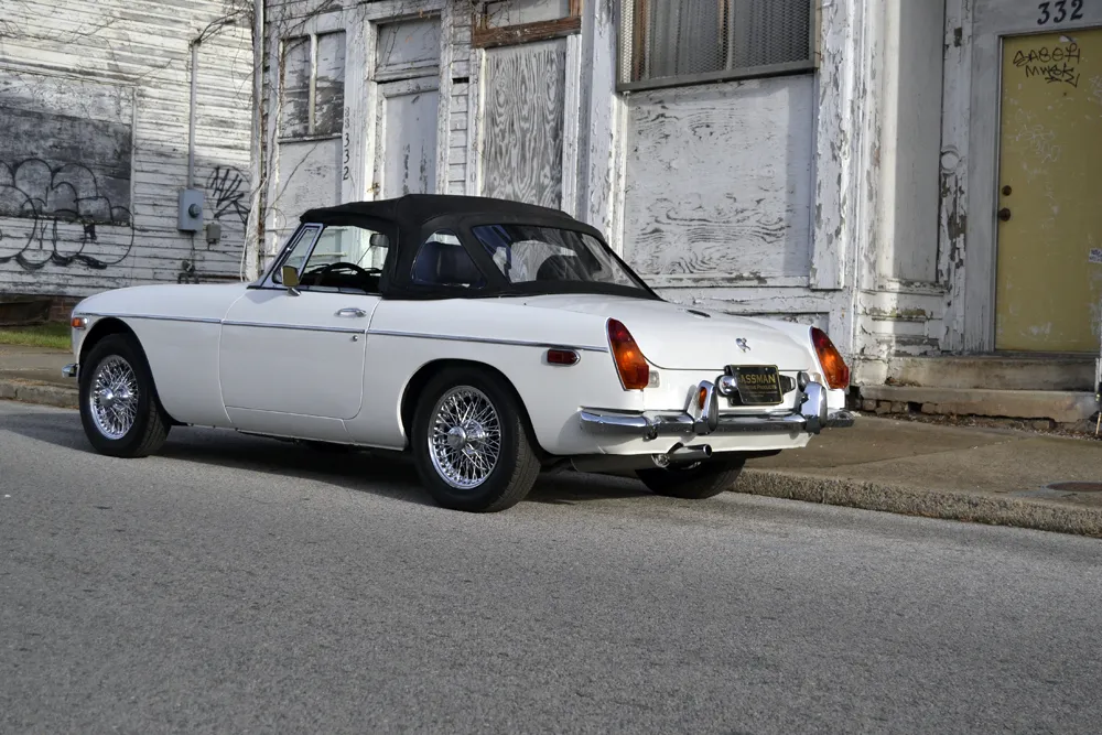 This beautiful MGB has just been recently acquired. The previous long-term owner and restorer of the car has unfortunately passed away, and we purchased all 4 of his British sports car that he has restored and tenderly loved. He bought it from his good friend in South Carolina who was the original owner. This car is absolutely over the top fantastic. As nice as the top of the car looks, the things that really impressed me were the underside, the engine bay, and the attention to details. It is wearing its original sheet metal with no evidence of any accident damage or rust- EVER! This garage kept car was the perfect candidate for a light restoration, but because the restorer enjoyed making everything new, he has done a complete restoration with all new suspension, brakes, chrome, rubber, interior, top, bare metal re-spray, rebuilt engine, transmission, rear end, new tires, new chrome wire wheels, etc. This car still has the original windshield washer plastic bag, which is almost unheard of and it is still supple and holding fluid. During the restoration, the 1974 bumpers, which had a 3×5 rubber bumperette, were replaced with 1973 bumpers. This was not what people call a “rubber bumper” car, rather it was the last year of the chrome bumper B’s. It has been stated that less than 10% of the 1974 MGBs were sold with factory overdrive, and I would say that a very, very low portion of those were fitted with chrome wire wheels. This car was both. The interior is not only beautiful, but was properly redone with factory seat covers and new foams, a beautiful original top, and a stunning dash of which all gauges and switches work as new. These cars are on the upswing in value, and even though many of them were made, very few survived and ever less of those are rust free, accident-free, one owners with factory overdrive such as this. This car is absolutely stunning from engine bay to trunk, from top of bonnet to bottom of the floors. This is THE car you have been looking for. Please call us to discuss further, and to find out how reasonable our price is. Don’t miss this opportunity!