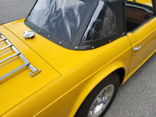 Excellent exterior and paint. Engine compartment is very clean, but the yellow paint in the engine bay appears to have been brushed rather than sprayed. Incredibly solid chassis with no rust and no obvious signs of repair. Possibly the oil leaks over the years have saved the rear trailing arms, as they are some of the nicest that we have ever seen. Brake booster and brakes work very nicely and stop the car in a straight direction. All lights, horns, turn signals, etc. work as they should. Car has been upgraded with a Sony AM/FM CD stereo. Several years ago (?) the motor was replaced and the replacement motor is an early '71-'72 (?) high-compression engine with virtually no power-robbing emission control. The factory dual exhaust and muffler create that nice tone that TR6's are known for without being overwhelming. All gaps on the car are very good and the body is very straight. It presents excellent and would make an exceptional driver for anyone looking for an honest TR6. A considerable amount of receipts come with the car as well as the current bill from us that shows a breakdown of money just spent.